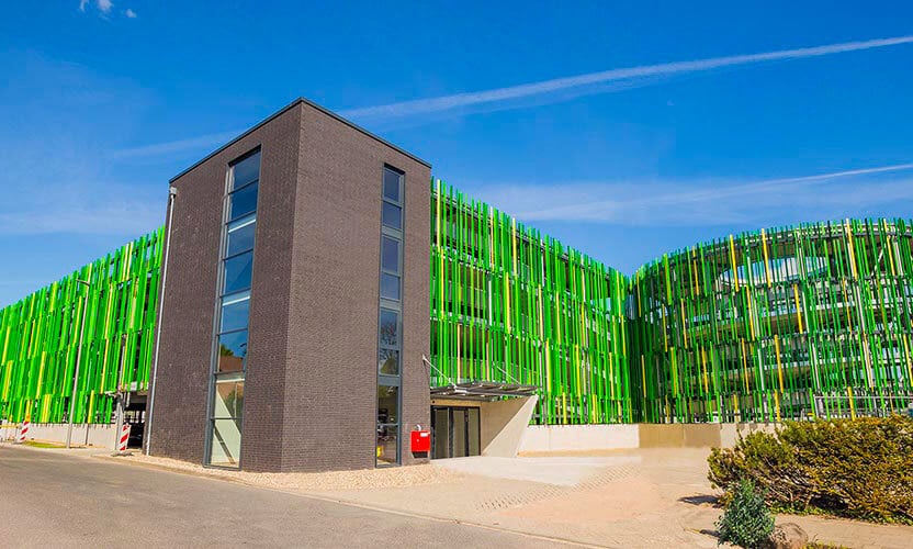 Auf über 16.000 m² befinden sich rund 500 Stellplätze auf vier Ebenen verteilt. Nach nur sechsmonatiger Bauzeit war das Parkhaus, das aus vorgefertigten Elementen besteht, betriebsbereit.