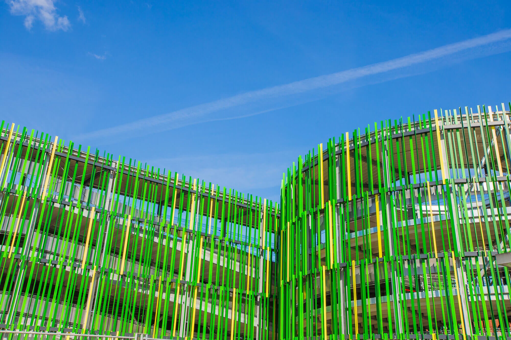 Bei einem offenen Parkhaus muss die Fassade größtenteils offen gestaltet sein. Wird die Anforderung der „Belüftung“ erfüllt, kann die Fassade sich dennoch über die gesamte Höhe des Parkhauses erstrecken. Fassaden geben Ihrem Parkhaus seinen „Look“ und seine Persönlichkeit und haben gleichzeitig eine funktionale Aufgabe.