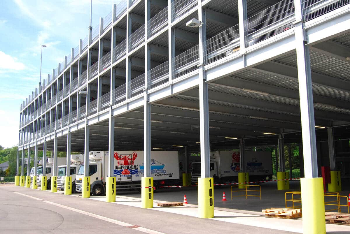 Ihr Parkhaus kann so konstruiert werden, dass im Parkhaus reine Abstellflächen für Transporterflotten zur Verfügung stehen oder diese kombiniert werden mit Abstellflächen für Lkws und Busse.